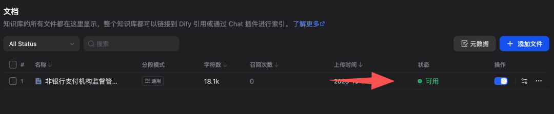 等待到文件状态为绿色的可用后,我们的知识库正式准备好了