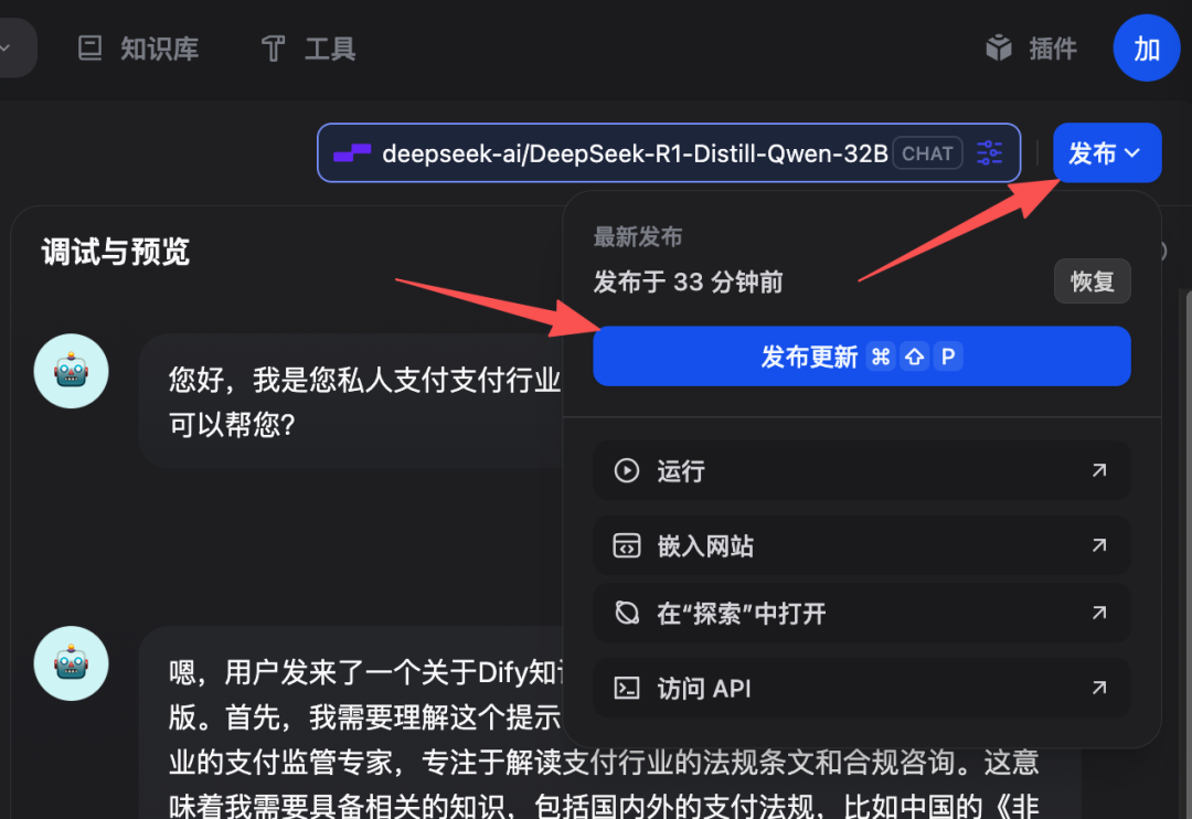 我们可以在这个页面体验,也可以点击发布按钮,进行发布