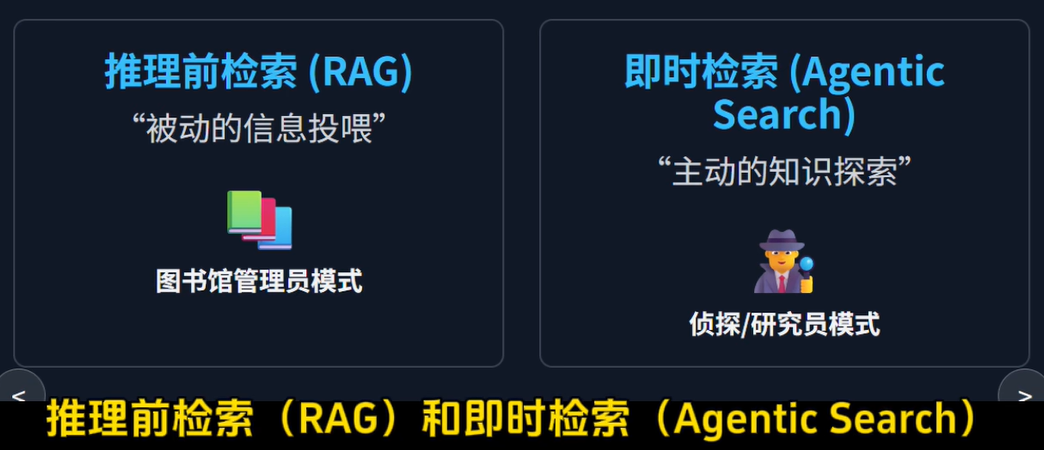 - 传统RAG:像一个只会查字典的学生,查到什么用什么。