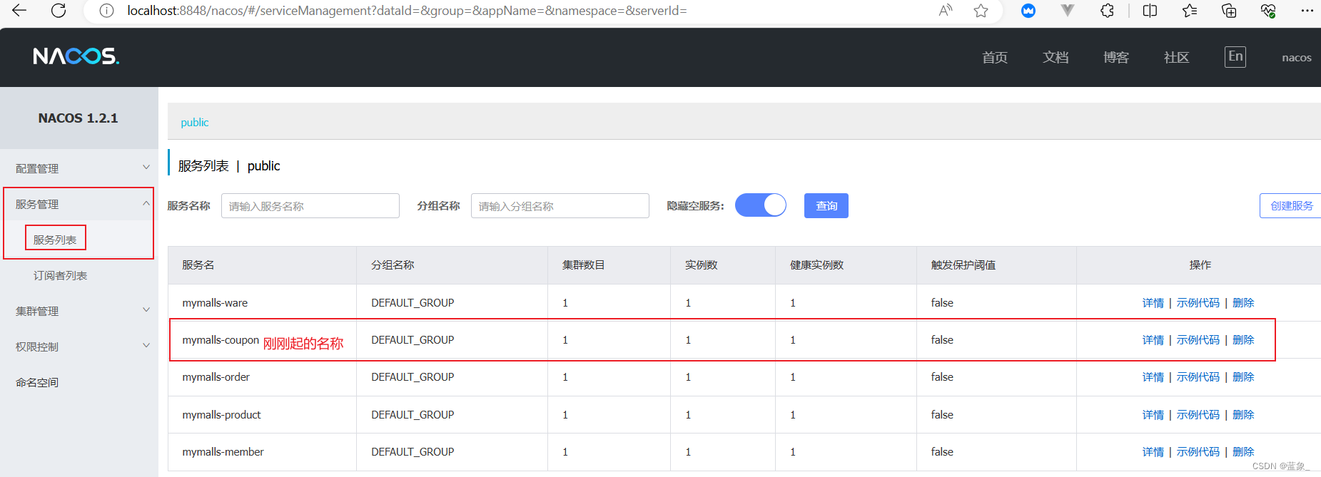 5.运行项目后,在Nacos客户端中查看