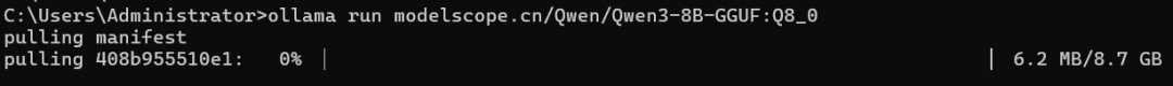 ollama run modelscope.cn/Qwen/Qwen3-8B-GGUF:Q8_0