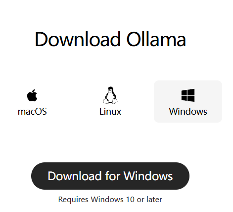 我们拿装有N卡的windows来举例子,mac和linux的安装方法都差不多,大家可以查看官网,ollama的官网如下: