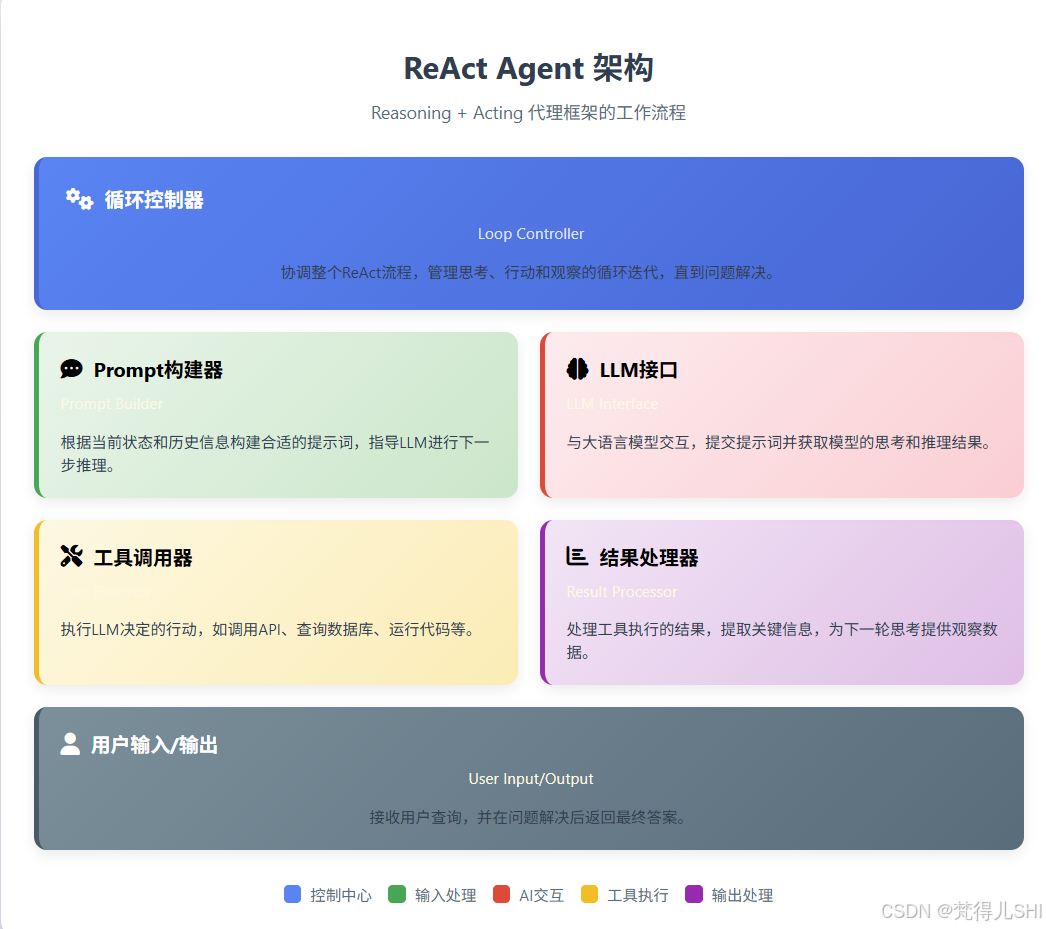 循环控制器:管理整个 Thought→Action→Observation 循环的流程,决定何时终止循环。