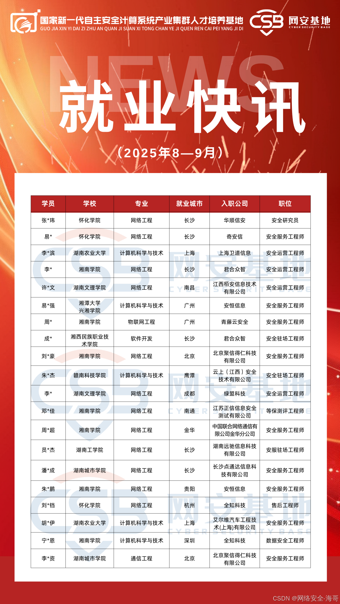 现在,就从选择适合自己的学习方式开始,开启你的网络安全守护者之旅!欢迎关注湖南网安基地最新招生信息,让我们共同为守护网络空间安全贡献力量。