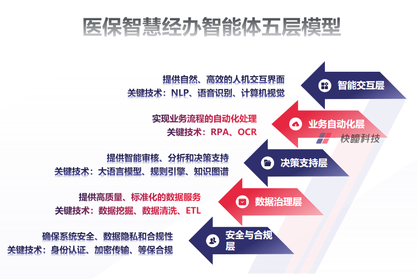 医保智慧经办智能体的技术架构可分解为五个核心层级,共同支撑其高效、稳定、安全的运行。
