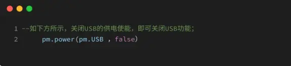 低功耗模式pm.WORK_MODE,1和PSM+模式pm.WORK_MODE,3 下,会将LDO33USB关闭;