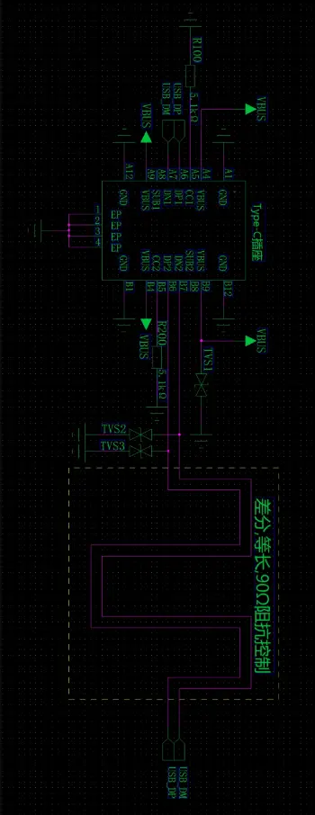 USB接口的PCB设计中,差分信号线(USB_DP/USB_DM)的阻抗需控制在90Ω±10%(即81Ω~99),这是保证信号完整性的关键参数。