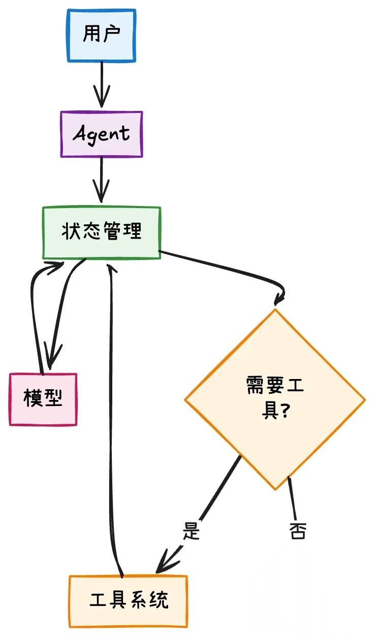 LangGraph的简洁性体现在:几行代码就创建了一个完整的ReAct Agent,系统自动判断是否需要调用工具,消息历史自动维护,工具调用完全透明。