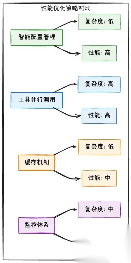 性能优化:并行工具调用,状态增量更新,缓存机制。