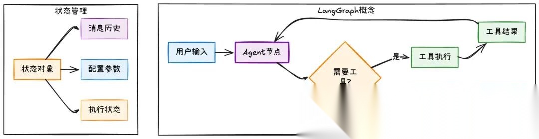 理解了ReAct的原理后,你可能会想:如何在项目中实现这种"推理-行动"的循环?比如,如何让AI在需要时主动调用工具,如何管理整个对话状态,如何控制循环的结束条件?LangGraph就是专门解决这些问题的框架。