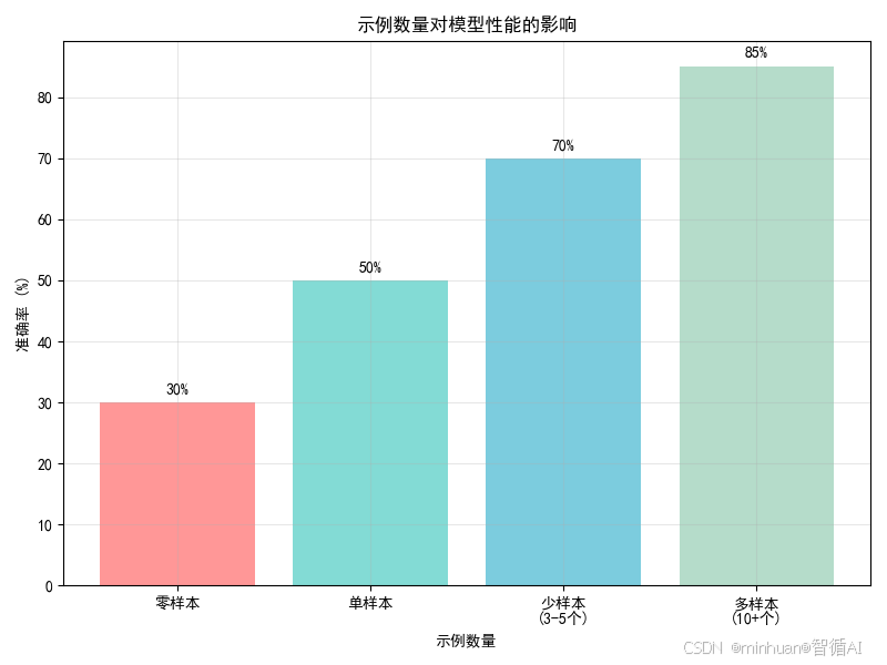 - 示例选择敏感:提供的示例质量、数量和顺序都会显著影响效果。