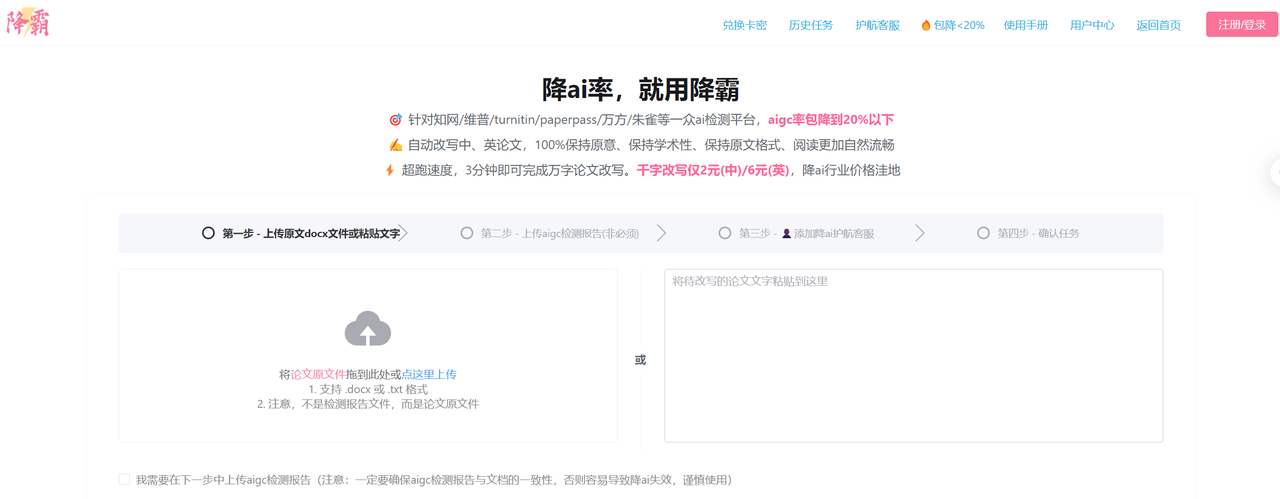 名字听着很厉害,但实际效果就……一般般。它说自己能降AIGC,但实测AI率下降有限。