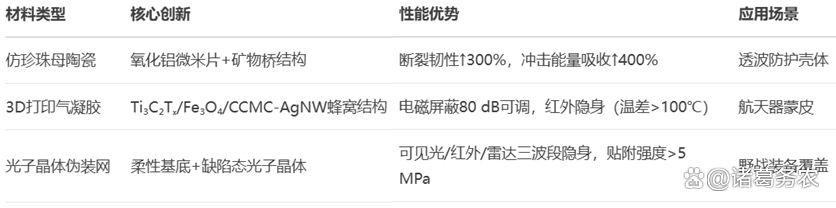 被动对抗材料正走向多频谱兼容、动态自适应、智能化设计:激光防护聚焦超快响应碳基复合材料;隐身材料突破多波段矛盾(如光子晶体“光谱挖孔”);多功能复合材料实现力学-隐身-热管理协同(仿生设计+3D打印)。