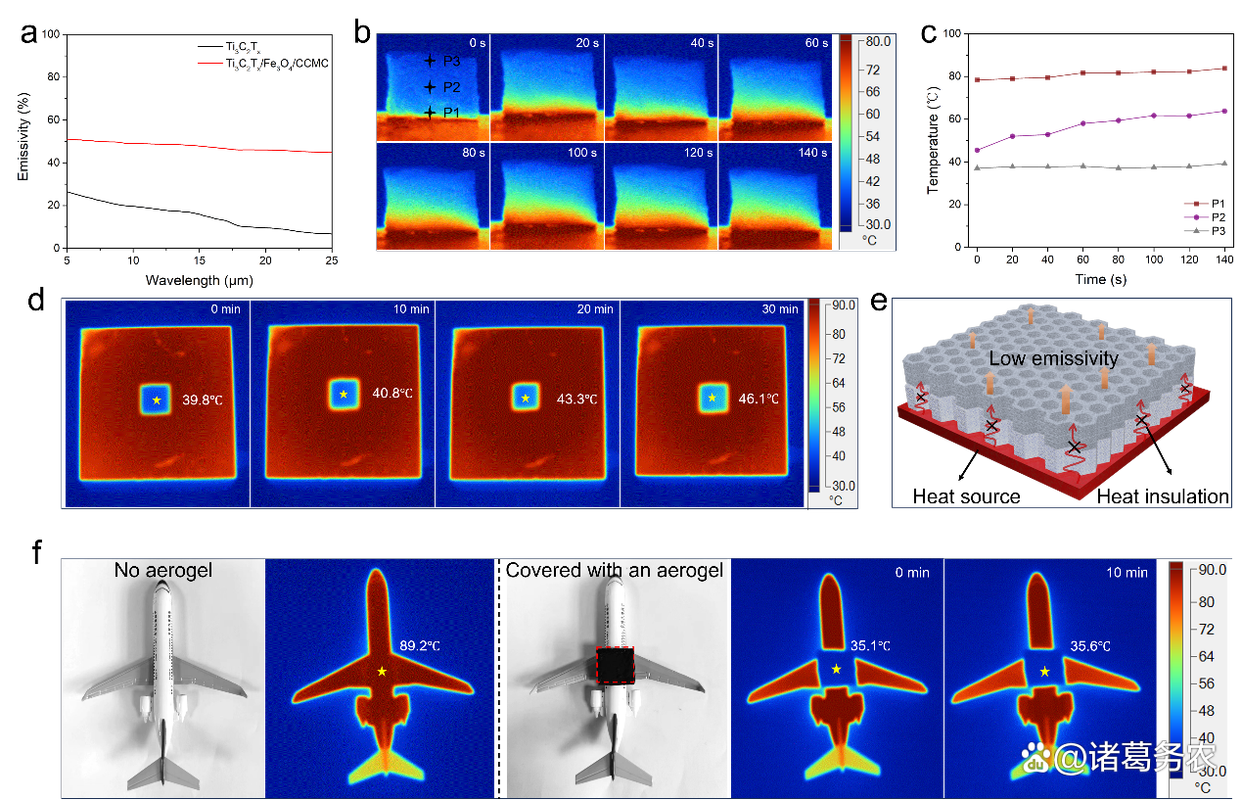 (Ti3C2Tx/Fe3O4/CCMC)–(AgNW/CCMC)气凝胶的红外隐身性能