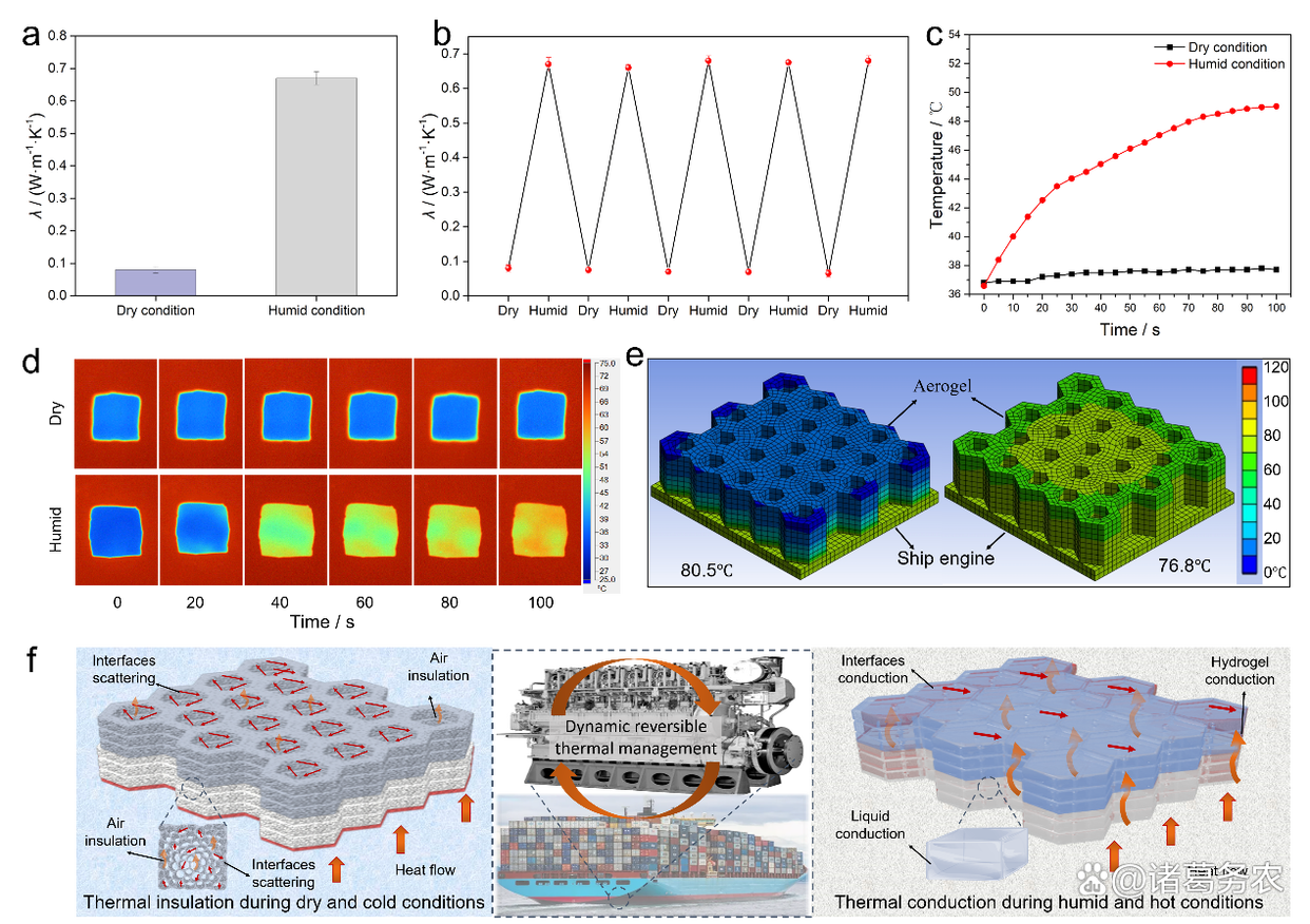 动态热管理材料:仿珍珠母氧化铝陶瓷基复合材料,利用层状结构微米透波通道,实现隔热(0.08 W·m⁻¹·K⁻¹)与导热(0.67 W·m⁻¹·K⁻¹)可逆切换,适应昼夜温差