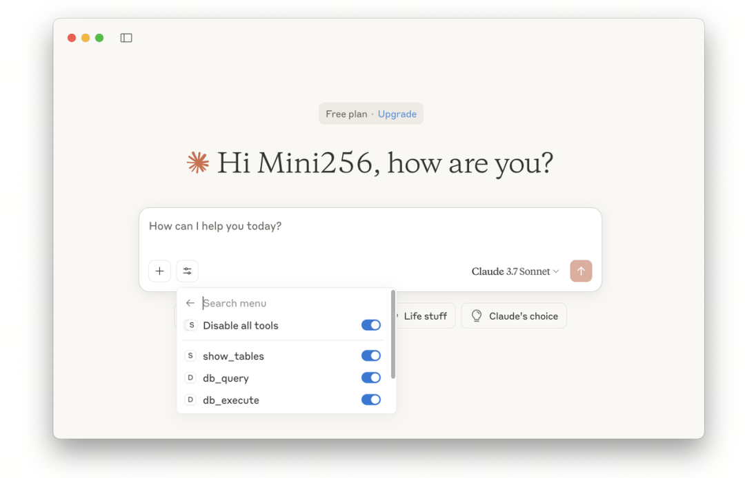 - 重启 Claude Desktop,即可在工具列表中查看到 TiDB MCP Server 支持的调用工具。