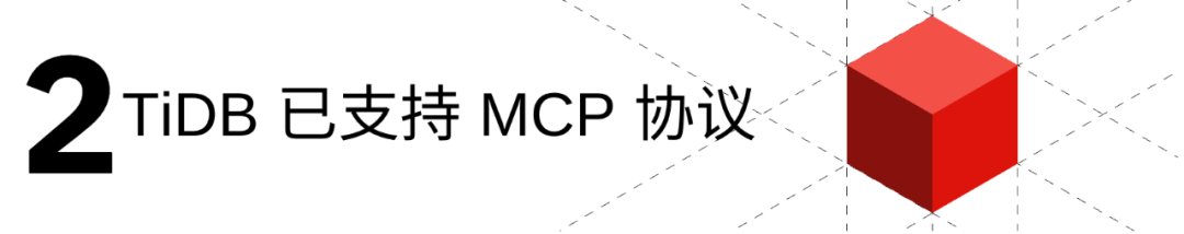 现在,TiDB 的 AI SDK——PyTiDB,已原生支持 MCP 协议。开发者无需编写复杂的插件或 API,只需简单配置,即可将 TiDB 接入支持 MCP 的 AI 工具。