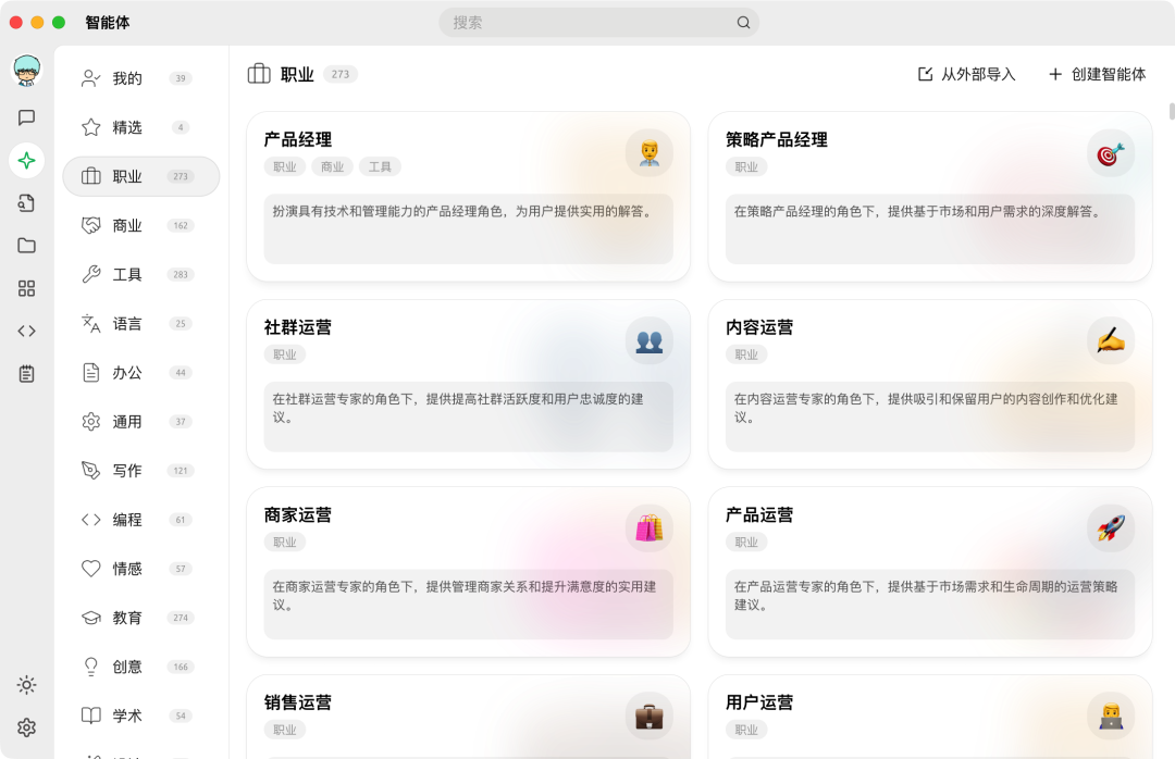 像 豆包 、Cherry Studio、 扣子(Coze),它们更像是“智能体的创建平台”。从结构上看,它们提供了完整的“大脑”(模型)、“记忆”和“工具(如插件)”组件,让普通人也能搭建智能体。