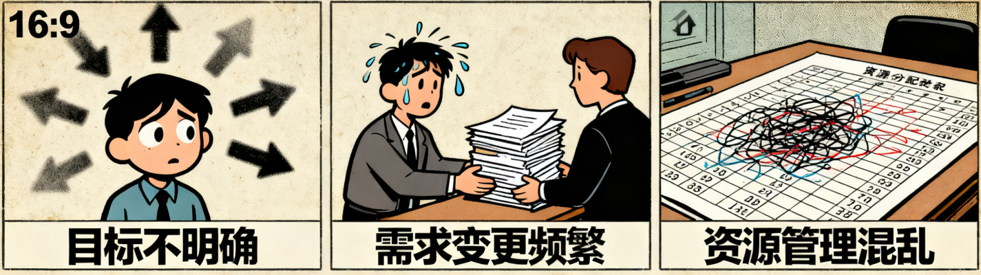 - 目标不明确:目标是项目的灯塔,若灯塔黯淡,项目便容易迷失方向。某市场推广项目,起初只定下 “提升品牌知名度” 这一模糊目标,没有具体的量化指标,如曝光量、转化率等。执行过程中,团队成员各自为战,有人侧重于线上广告投放,有人专注于线下活动策划,方向的分散导致资源浪费,工作重复,最终项目不仅未能达到预期效果,还严重超时。据相关研究表明,明确的项目目标能将项目成功率提高 50% 以上 ,可见清晰目标对项目的重要性。