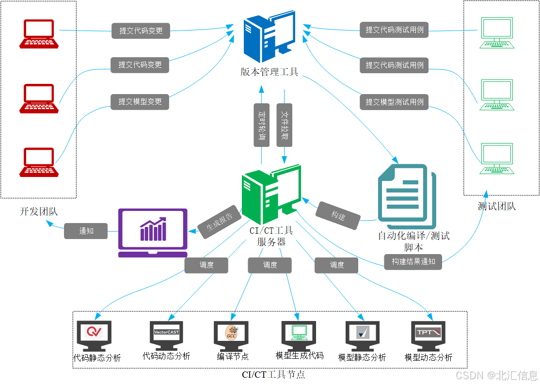 北汇信息可以提供Jenkins、Gitlab Runner CI和自研平台等的CI/CT整体解决方案,包括: