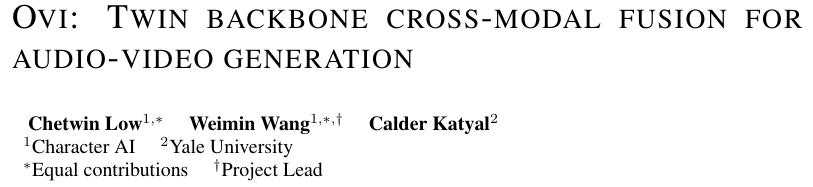 Character AI和耶鲁大学的研究团队联手推出OVI(Ovi: Twin Backbone Cross-Modal Fusion for Audio-Video Generation)。