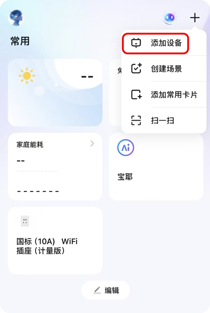 - 点击右上角的加号,选择“添加设备”。