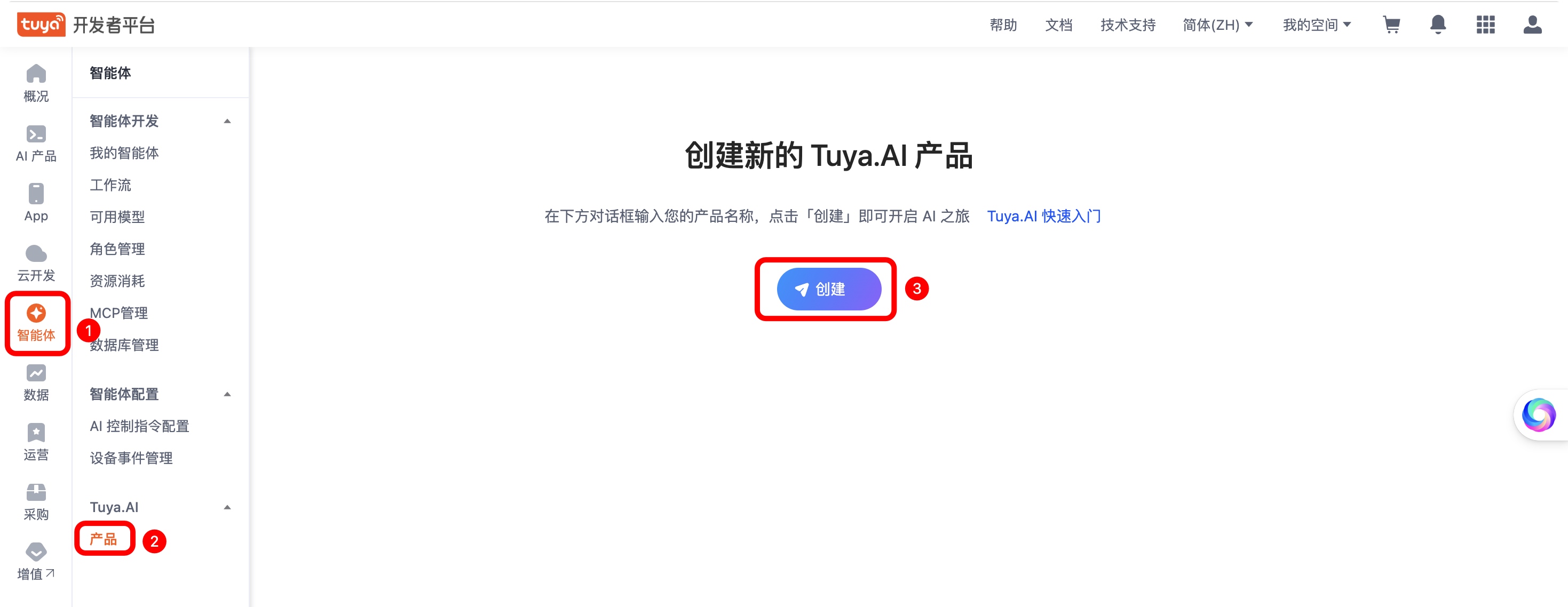 登录涂鸦开发者平台(iot.tuya.com),创建你的AI产品