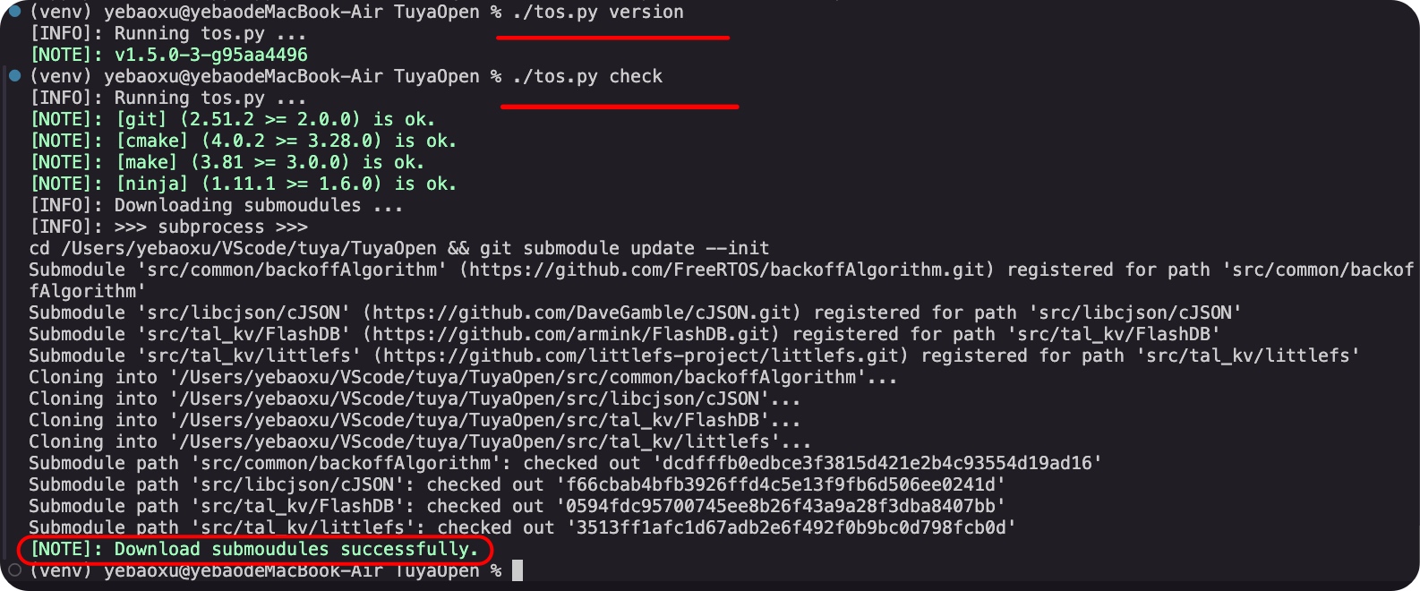 (venv) yebaoxu@yebaodeMacBook-Air TuyaOpen % ./tos.py check