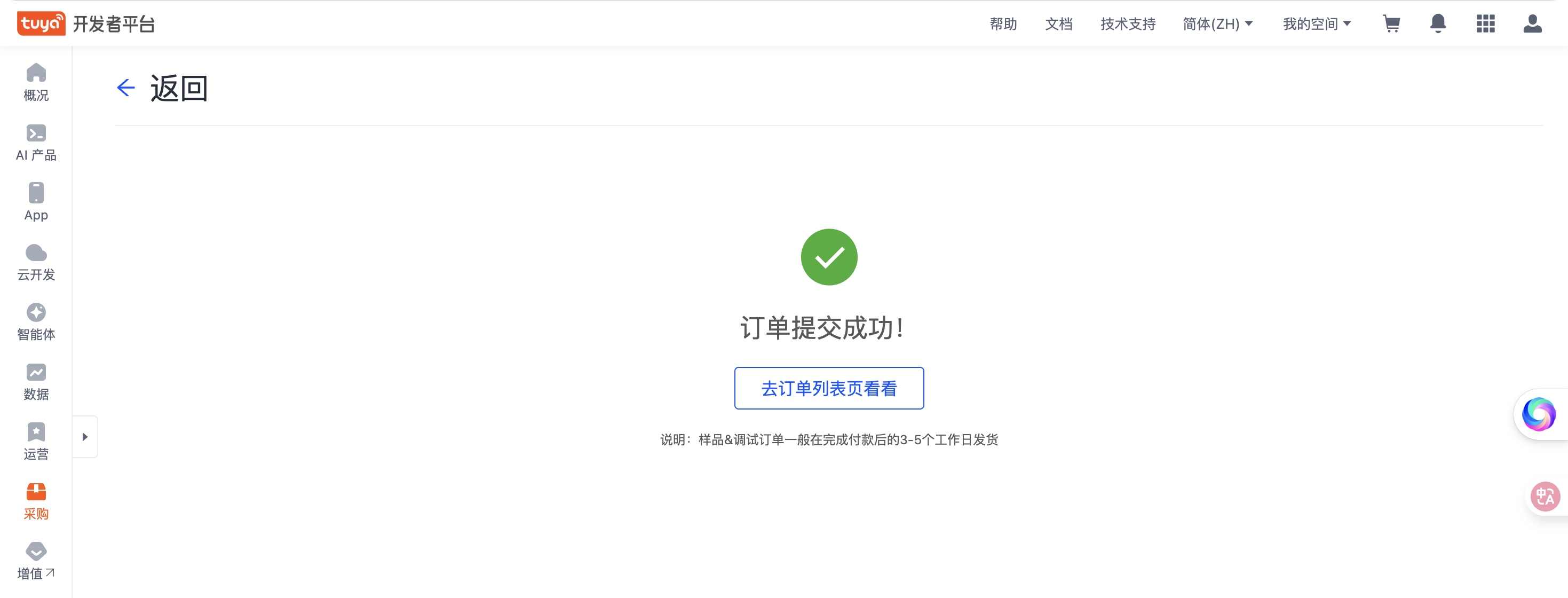 - 订单提交成功。