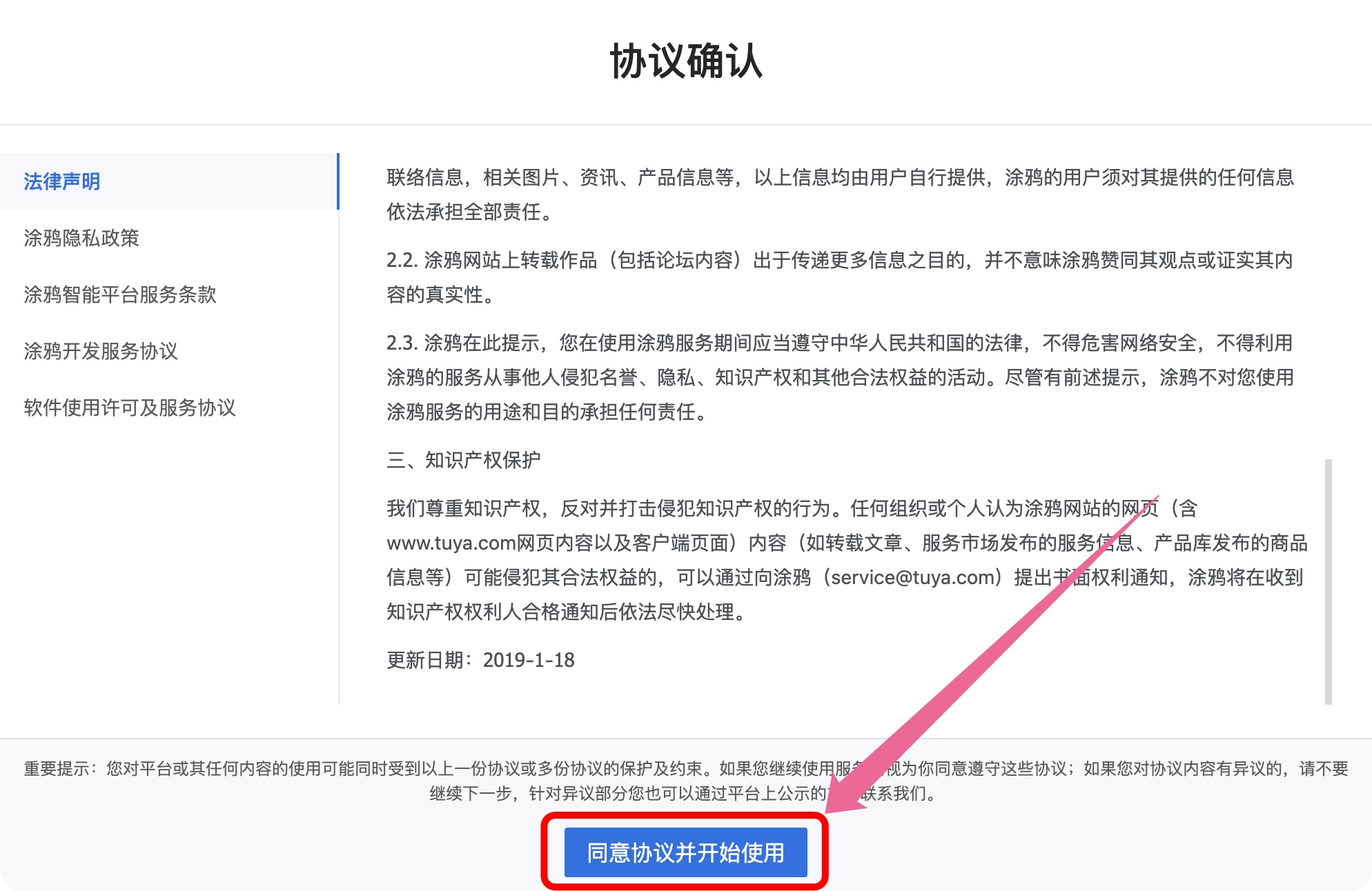- 同意协议并开始使用