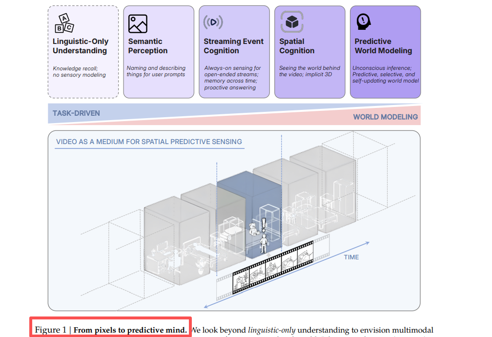 Cambrian-S提出 “预测性感知”(Predictive Sensing) 新范式: