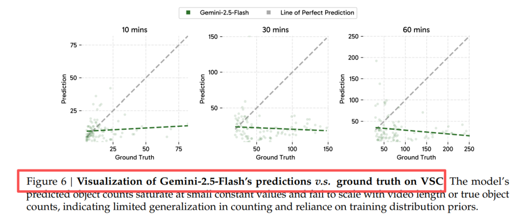 对人类来说这是本能,对AI却是灾难——Gemini-2.5-Flash在120分钟视频上准确率仅10.9%,计数结果永远不随真实数量增长,卡在训练分布的常数上!