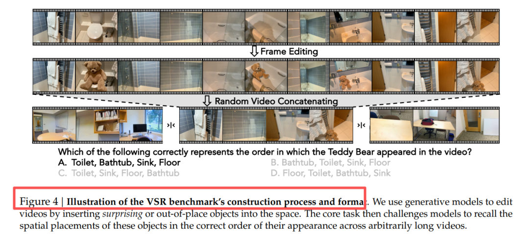 在长达240分钟的房间巡游视频中,人类标注者用AI把泰迪熊P进4个不同位置。模型需要按顺序回忆:“第几个房间?什么位置?”