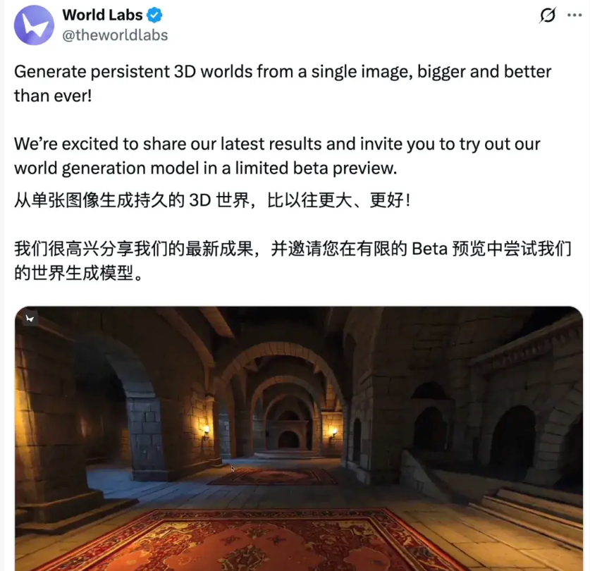 好消息是,原型已经来了——World Labs最近展示了Marble平台的早期成果,创作者可以用多模态提示生成可交互的3D环境,在里面自由探索和扩展。这标志着世界模型从理论走向实践的关键一步。