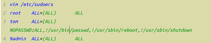 - cat /etc/sudoers/grep -Ev “^$^#”