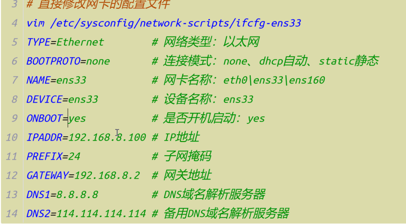 例如:/etc/sysconfig/network/scripts/ifcfg-ens33