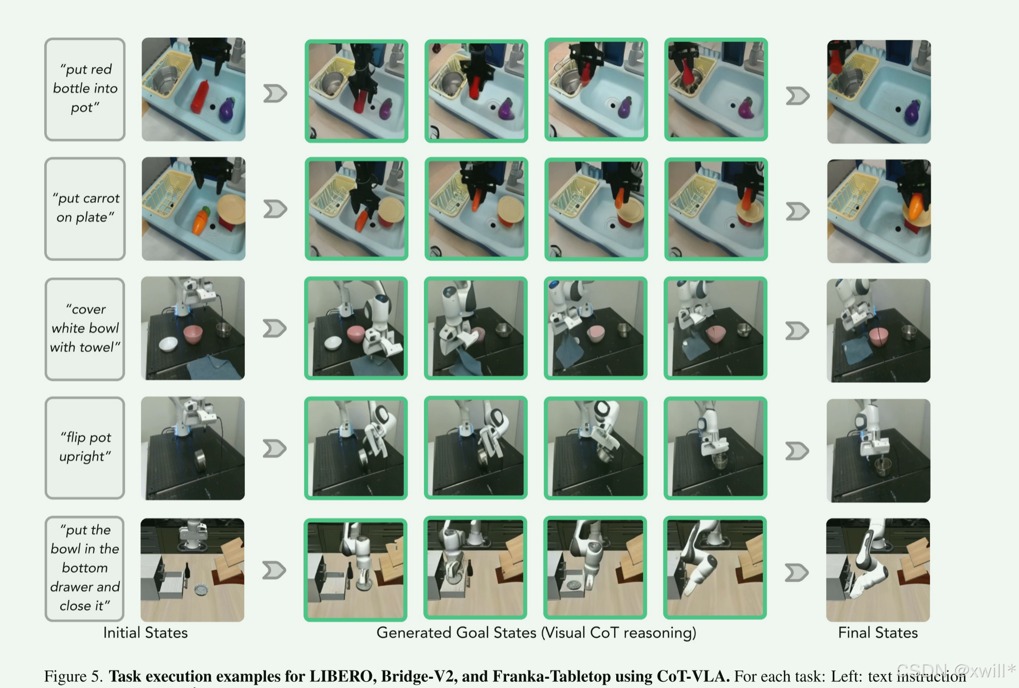 CoT-VLA 让机器人具备“视觉思维链”能力,在执行动作前,先通过想象未来画面进行视觉层面的推理,再生成动作。