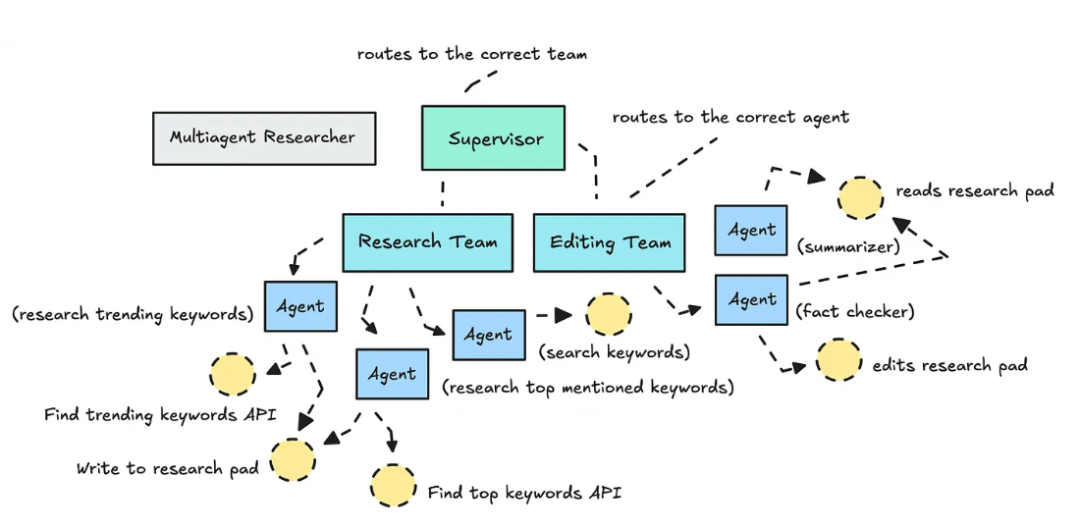我换了一种思路:一个“主编 Agent”统筹全局;几个“研究员 Agent”分别负责数据采集、筛选、总结。