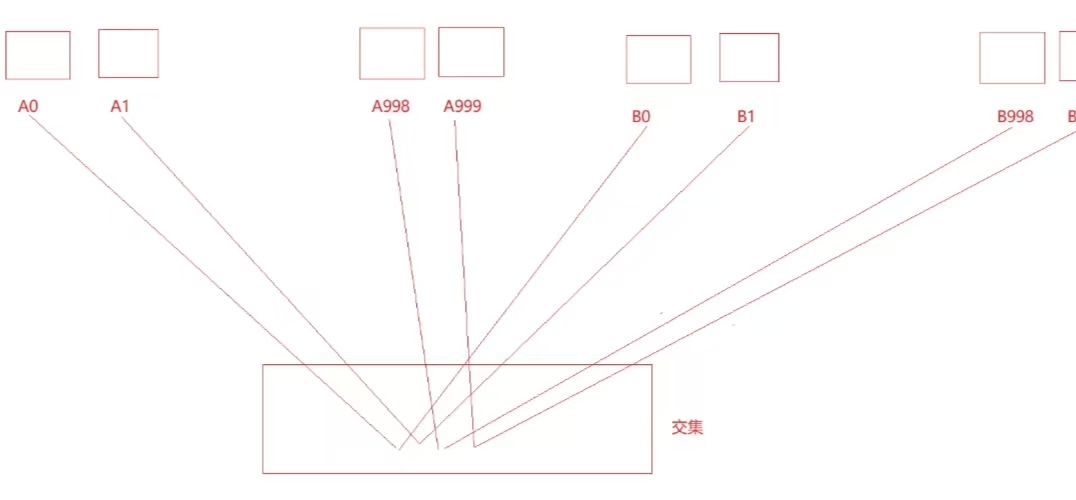 不同的 query 语句会得到不同的下标 i,这个下标 i 决定着这条 query 语句会被存入哪个小文件中,显然,一样的 query 语句计算出一样的下标,也就意味着它们会进入下标相同的小文件中,经过 哈希切割 后,只需要将 大文件 A 中的小文件 A0 与 大文件 B 中的小文件 B0 进行求 交集 的操作就行了,这样能大大提高效率。