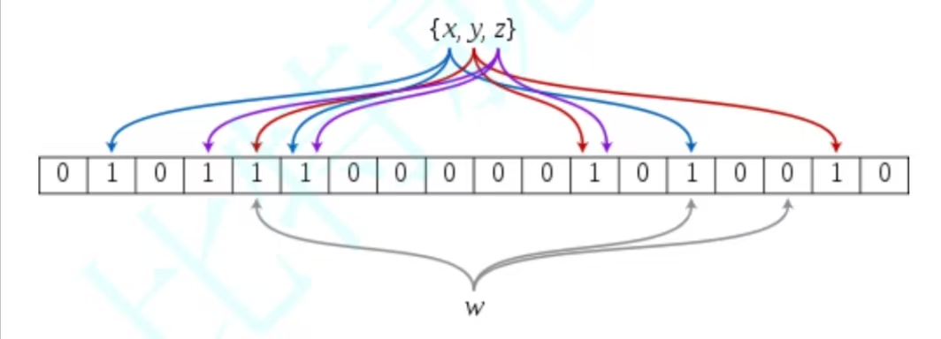 查找时,需要判断它每一个的哈希值是否都存在,如果有一个不存在那么就是不存在的。