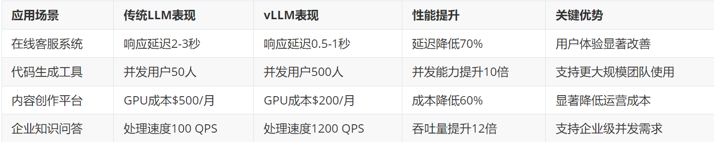 这种技术架构的差异,直接决定了vLLM在实际应用中能够带来显著的性能提升。