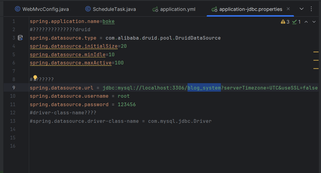 配置数据源(Druid连接池):图片中显示了Druid的配置。