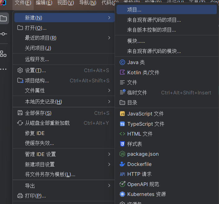 1. 在主菜单中,前往文件(F)- 新建(N)- 项目(P)。