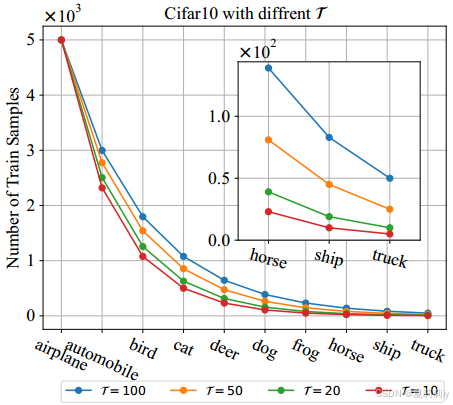 ③合成数据集:CIFAR-LT。统计展示:
