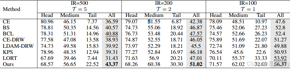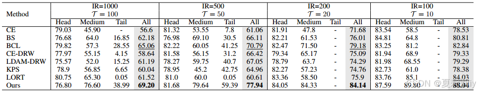 ③CIFAR100-LT基准测试中的性能: