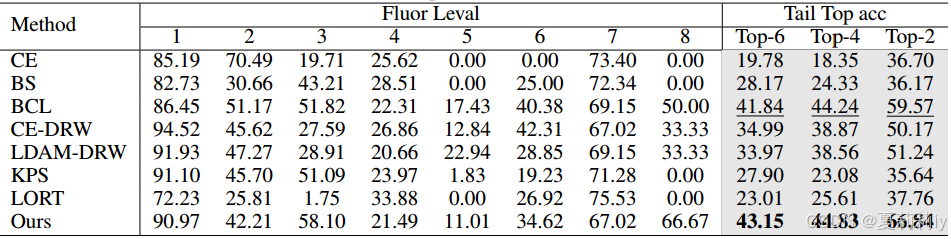 ②当前的长尾识别(Long-Tailed Recognition, LTR)方法有:重新采样,重新加权,解耦(就是两阶段)训练,损失设计