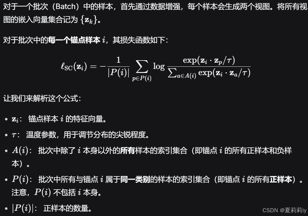 其中是每个锚点的SupCon损失,这个损失懒得单独敲了我截图在下面: