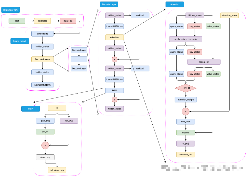 在完成了 LLaMA2 的 Attention 模块 和 MLP 模块 之后,我们终于可以组装出它的核心结构——Decoder Layer(解码层)。