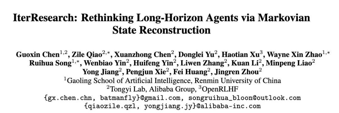 论文题目: 《IterResearch: Rethinking Long-Horizon Agents via Markovian State Reconstruction》