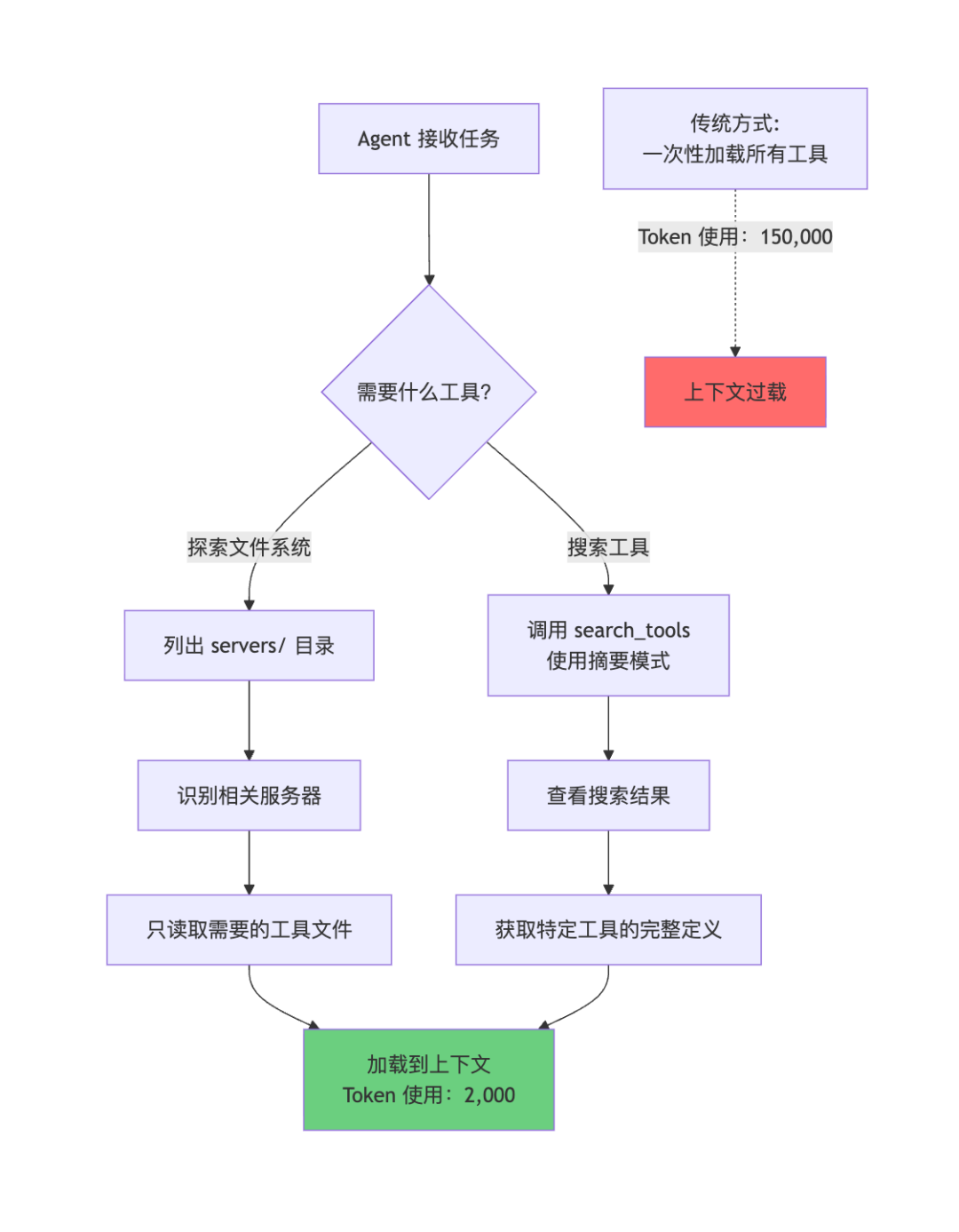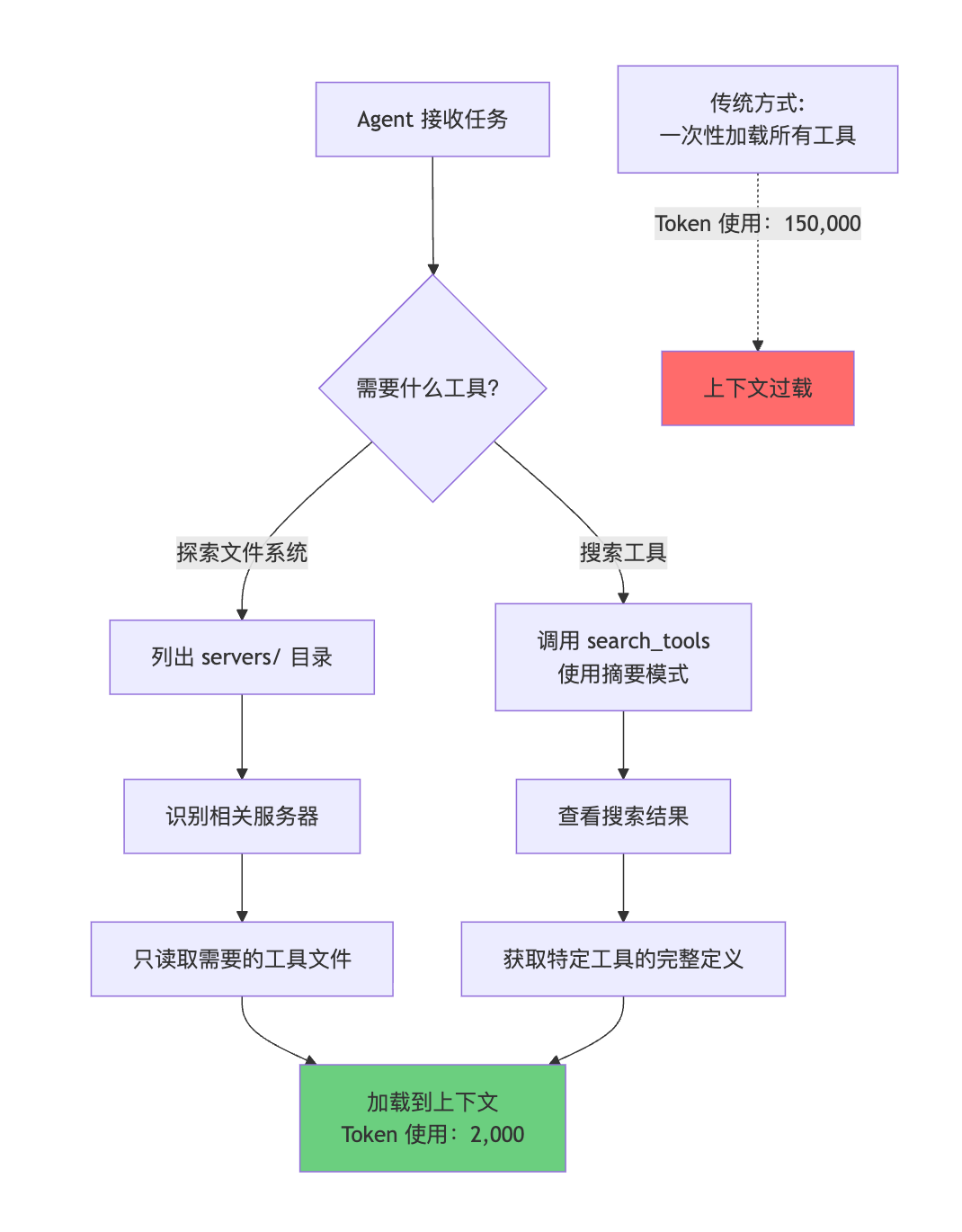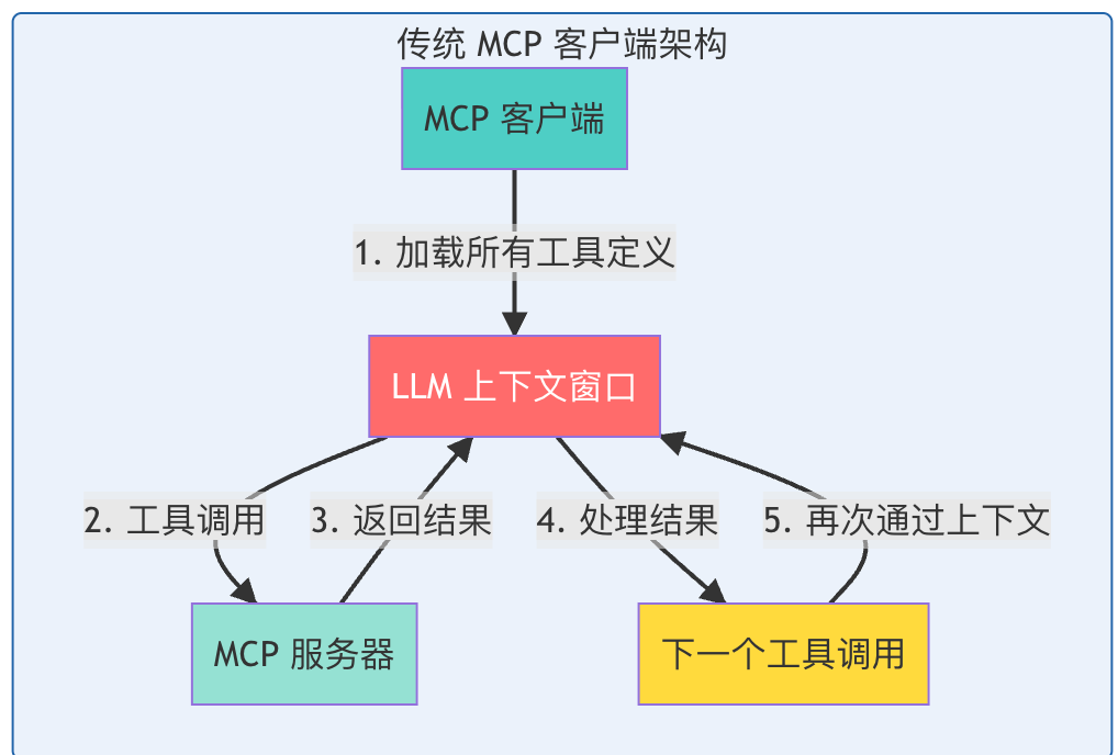 然而,随着开发者构建连接数百甚至数千工具的 Agent,一个严重的问题浮现:传统的直接工具调用方式导致上下文窗口过载。